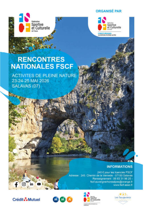Du 22 au 25 mai 2026, le comité régional FSCF Auvergne-Rhône-Alpes, en partenariat avec le comité départemental FSCF Ardèche et la commission nationale des activités de pleine nature, aura le plaisir de vous accueillir à l'Espace Découverte Ardèche au 245 chemin de la Vernède 07150 SALAVAS.